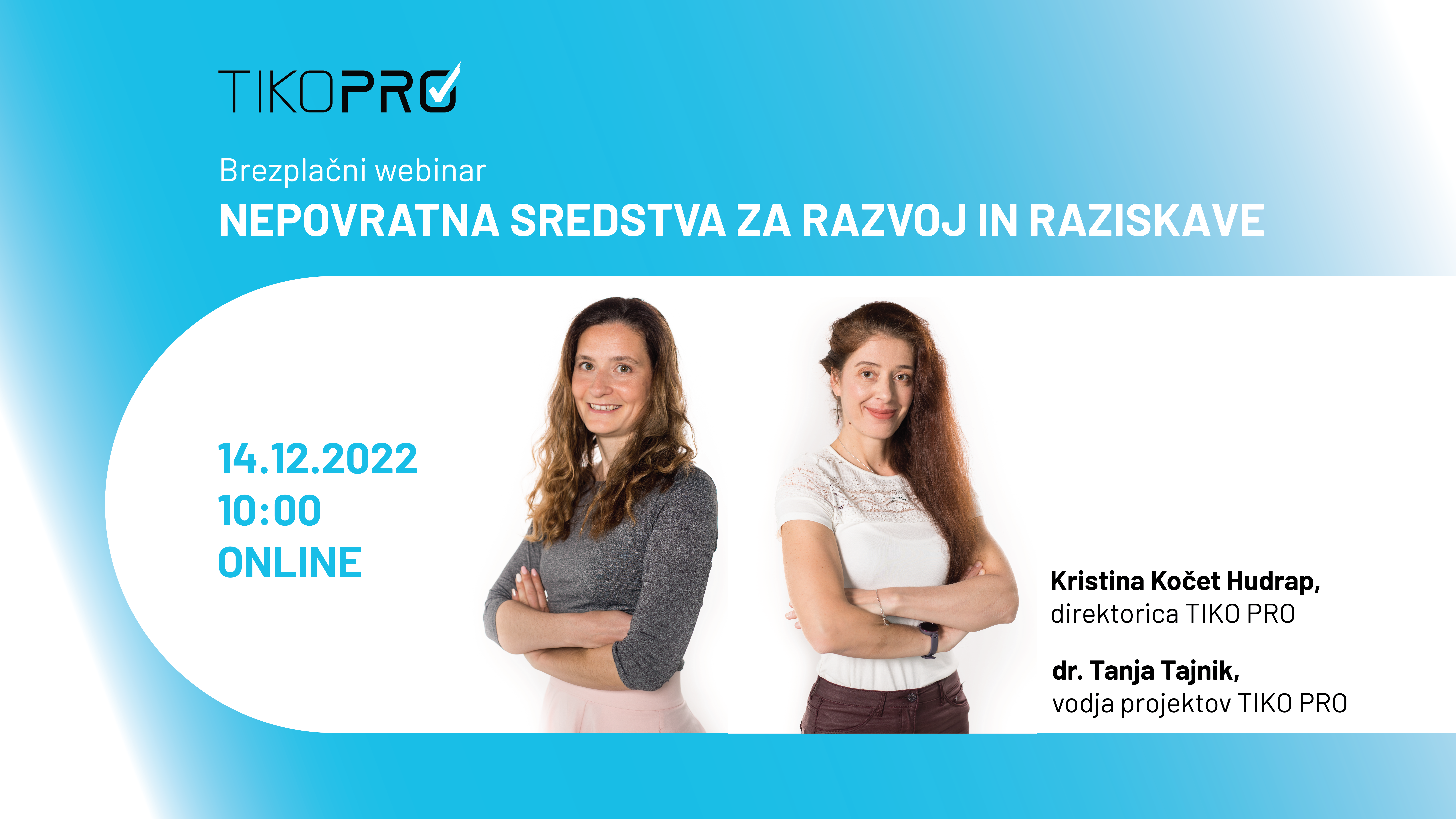 14.12.2022 smo izvedli Tiko Pro Brezplačni webinar o razpisu za pridobitev nepovratnih sredstev za razvoj in raziskave v podjetjih.
